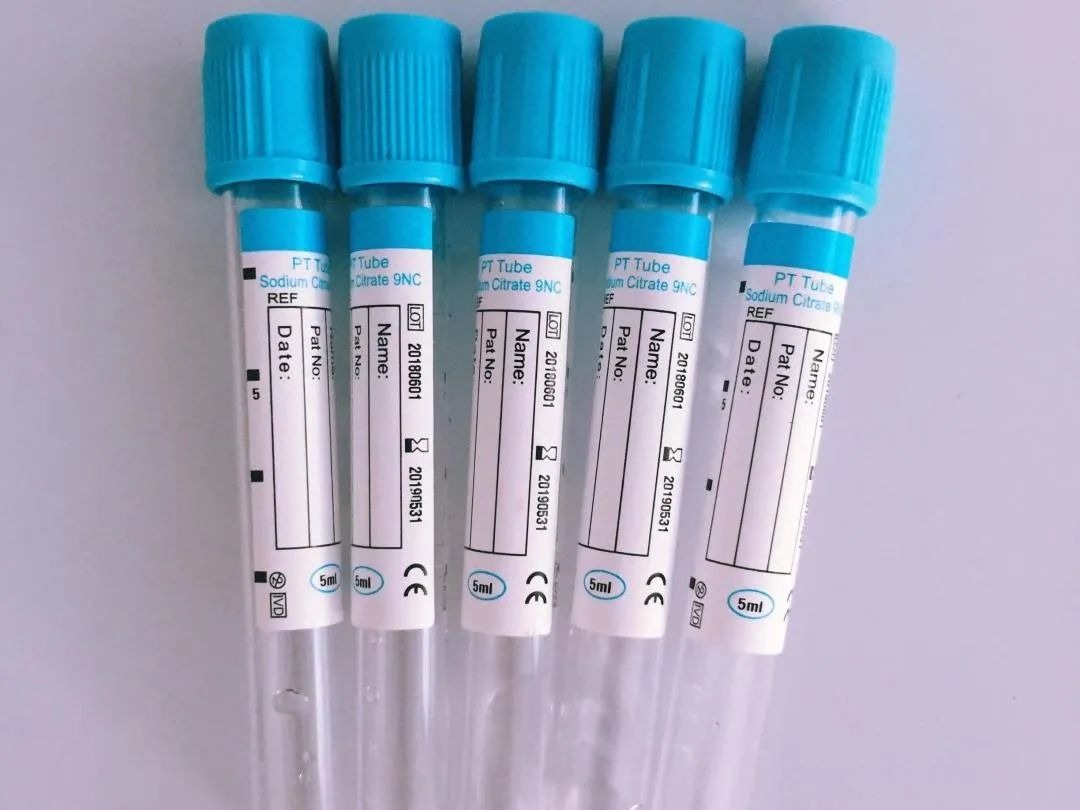 含有3.2%或3.8%的柠檬酸钠(枸橼酸钠),采血时请注意采足血量,以保证检验结果的准确性。采血后请立即颠倒混匀5-8次。抗凝剂与血液的比例为1:9。